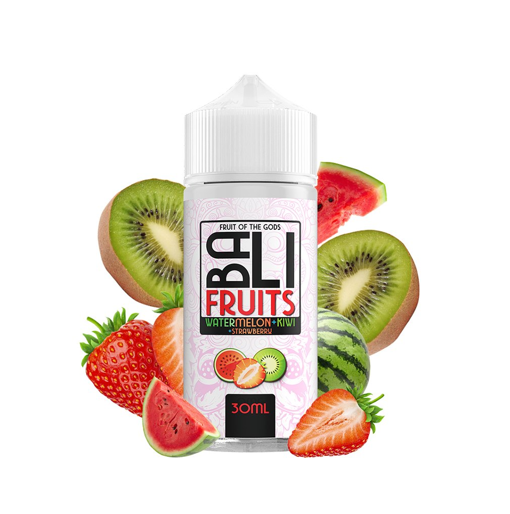 El aroma Watermelon + Kiwi + Strawberry de Bali Fruits by Kings Crest en formato Longfill, te sorprenderá por su fusión de sandía, fresas y kiwi. ¡Una mezcla irresistible para el paladar!